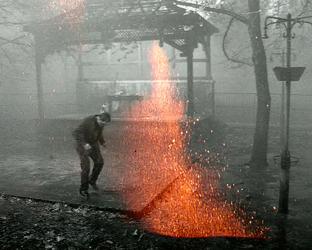 Il panorama delle vicende umane incontra l’uomo con la macchina da presa. Il suo campo da gioco non ha confini, la sua curiosità non ha misura. Personaggi, situazioni e luoghi si accampano nel vissuto di un’umanità che è al contempo colei che vede e la cosa vista. Ma cosa sono gli ultimi giorni di questa umanità? Sono già trascorsi? Sono adesso o da venire? Nell’attesa gli astronauti dell’Atalante, nei loro sogni prometeici, incontrano la propria immagine in una bolla d’acqua. Il pilota spinge il suo bolide alla follia, in soggettiva, tra paura e desiderio. Lungo i tragitti dei piroscafi a mare aperto, una carezza, un affetto. Allo specchio, camera in mano, si verifica, certo sempre incertamente, la propria cattura dentro quella corta, troppo corta, unità di tempo. Ma quello che abbiamo imparato è che non c’è una durata. Tutto quello che toccano diventa tempo, diventa azione, attesa e speranza, ricorda Demetra all’umano affaccendarsi. Frammento di frammenti. Per compiere un gesto che sfugga la malinconia e la giochi in un movimento addirittura impossibile. Il teatro di Marte di Kraus non ha ancora aperto, eravamo occupati ad anarchiviare. E questo dramma non può avere altro spettatore che l’umanità.